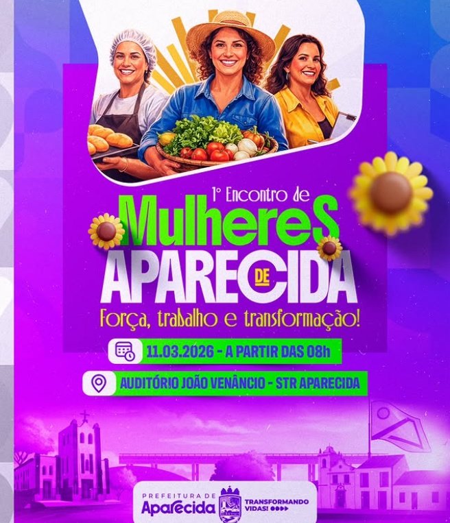 A Prefeitura Municipal de Aparecida realizará o 1º Encontro de Mulheres de Aparecida como parte da programação da Semana de Valorização e Empoderamento da Mulher no município. O evento acontecerá no dia 11/03 a partir das 8h, no Auditório João Venâncio, localizado no STR Aparecida.