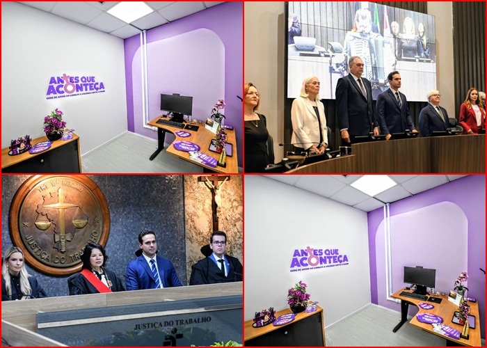 O governador Lucas Ribeiro participou, nesta sexta-feira (10), da inauguração de mais uma Sala Lilás, um espaço destinado a mulheres vítimas de violência e que vai funcionar no 4° andar do Tribunal de Justiça da Paraíba (TJPB), no Centro de João Pessoa, dentro da estrutura do Programa Antes que Aconteça. A entrega do equipamento à população feminina ocorre no mesmo dia em que o Superior Tribunal de Justiça (STJ) e o TJPB promovem um seminário sobre a violência contra a mulher. Logo em seguida, Lucas Ribeiro se dirigiu até a sede do Tribunal Regional do Trabalho (TRT-PB) para prestigiar a ratificação de posse da desembargadora Solange Machado Cavalcanti.