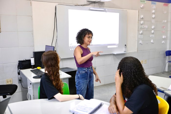Há cinco anos, ela integra o time da Escola Municipal Leonel Brizola, localizada em Tambauzinho, que segue o modelo de tempo integral desde 2023. Além de lecionar Geografia para as turmas do 8º e 9º anos, ela ministra a disciplina do currículo diversificado para alunos do 6º e 7º anos, chamada Protagonismo, e atua também como coordenadora da área de humanas.