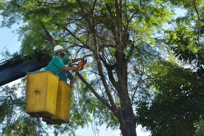 Trabalho conjunto – A partir da solicitação para podar uma árvore, uma equipe técnica da Secretaria de Meio Ambiente (Semam) vai ao local para examinar a demanda, emitir um laudo e autorizar a poda ou corte da árvore, desde que esteja em local público – calçadas, canteiros, praças ou outros tipos de equipamentos comunitários.