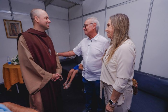 Fiéis que celebraram - Entre os participantes estava Jessica Kaline, que veio de Sapé, acompanhada da família, para acompanhar o show. Ela contou que a motivação foi a admiração pelo frade cantor. “A gente veio especificamente para o show de Frei Gilson, que é realização de um sonho que eu tinha. Sempre assisto ele pelo YouTube e pelas redes sociais, e hoje estou muito feliz por estar aqui realizando esse sonho. Eu conversei com o meu marido para participarmos do evento. Viemos eu, ele e o filho dele. Vale a pena realizar um sonho como esse”, disse.