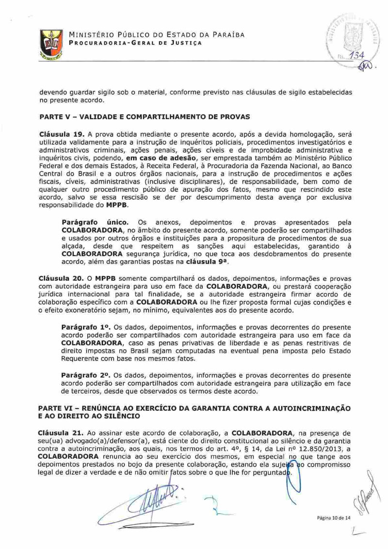 O acordo foi assinado pelos advogados de Livânia, Procurados do GAECO no dia 24 de julho de 2019.