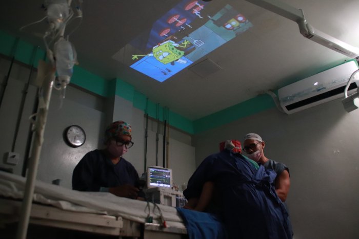 O grande diferencial desta etapa, no entanto, não está apenas nos bisturis, mas no teto das salas de operação. Para transformar a experiência hospitalar, que costuma ser intimidadora para crianças, a equipe do Opera Paraíba adotou uma estratégia baseada em evidências científicas: a projeção de desenhos animados. Desde o momento em que a criança entra na sala até a indução anestésica, ela pode assistir aos seus personagens favoritos projetados no teto.