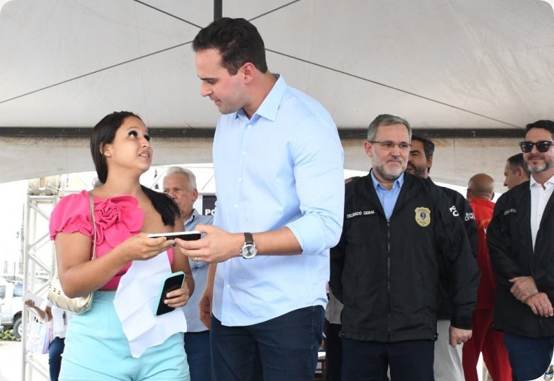 O governador Lucas Ribeiro participou, na manhã desta quarta-feira (15), na Cidade da Polícia Civil, em João Pessoa, da 8ª edição da Operação Recupera, ação da Polícia Civil da Paraíba voltada à investigação de roubos e furtos de celulares e à restituição dos aparelhos às vítimas. Nesta edição, cerca de 500 telefones foram devolvidos aos proprietários.