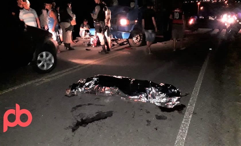 O caminhão ficou em cima da Moto. O corpo do rapaz foi arremessado alguns metros, e não resistiu, veio a óbito.