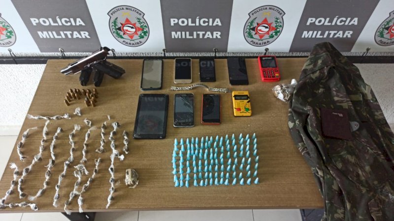 A Polícia Militar prendeu um jovem com uma pistola, munições, 115 pinos de cocaína, 73 papelotes de maconha, dinheiro trocado, duas maquinetas de cartão de crédito e sete celulares que teriam sido trocados por drogas, na manhã desta terça-feira (16), na comunidade Citex, no bairro do Geisel, zona sul da João Pessoa. O material estava em uma mochila.