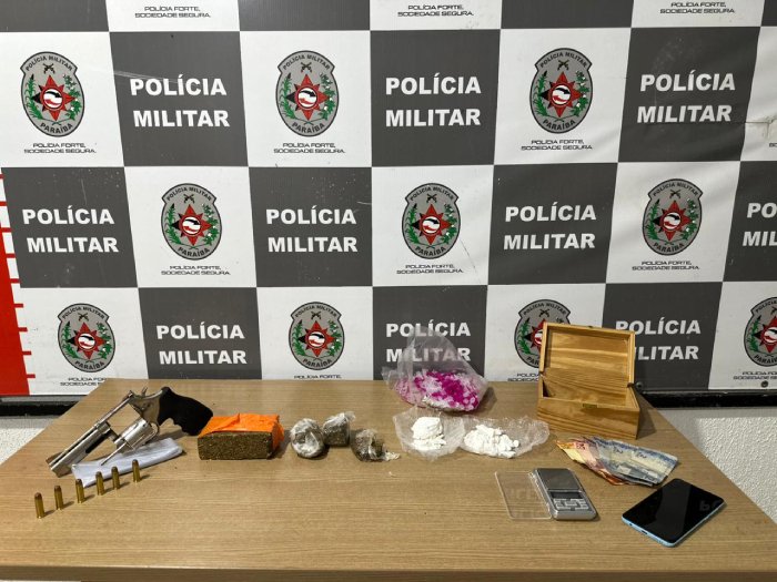 A Polícia Militar apreendeu um revólver, drogas, balança de precisão e dinheiro trocado, na noite dessa sexta-feira (3), ao atender um chamado, através do Centro Integrado de Comando e Controle, informando que uma mulher estaria sendo agredida pelo companheiro, no Condomínio São Rafael 3, no Bairro das Indústrias, em João Pessoa.