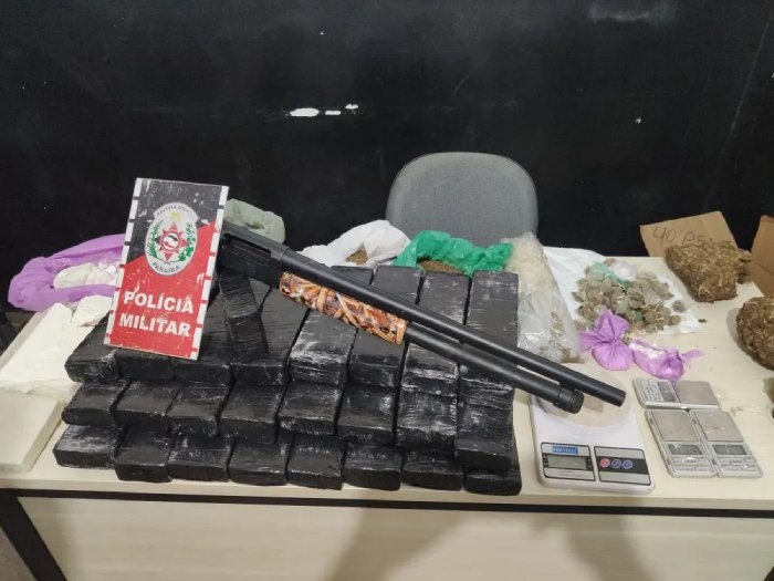 Durante a busca no imóvel, os policiais encontraram grande quantidade de crack, cocaína e maconha, além de uma espingarda calibre 12. O valor estimado do material apreendido pode ultrapassar milhões de reais, segundo avaliação preliminar das autoridades.