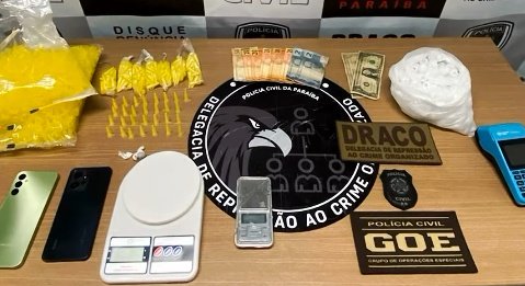 Durante a ação, realizada na capital paraibana, foram apreendidas vasta quantidade de entorpecentes, balanças de precisão, maquineta de cartão e aparelhos celulares que estavam em posse do suspeito.