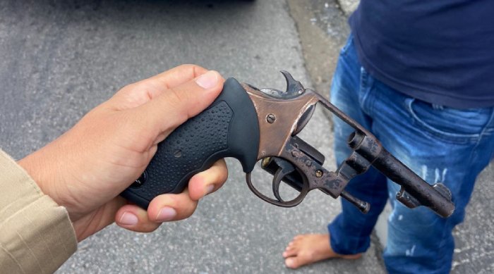 Na abordagem da PM, os acusados foram flagrados com um revólver e munições. Eles têm 28 e 26 anos de idade, e um deles já cumpria pena por roubo, mas teve mandado de prisão expedido para regressão cautelar.