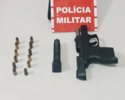 De imediato, os Policiais iniciaram as diligências e localizaram o carro com as características informadas. Ao realizarem a busca pessoal nos dois ocupantes, um deles foi flagrado portando uma Pistola calibre 9mm. A arma estava carregada com 12 munições.