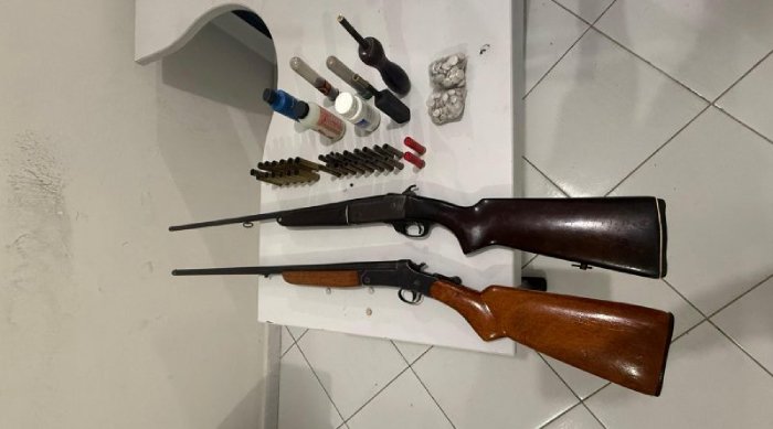 Nas buscas, as armas foram localizadas. A ocorrência foi levada para a Delegacia de Polícia.
