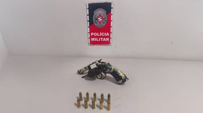Em Santa Rita, policiais militares da Força Tática do 7ºBPM realizavam policiamento no bairro do Onze, quando interceptaram um homem que, ao perceber a aproximação dos policiais, arremessou uma pochete para dentro de uma residência e fugiu. Na pochete foi encontrado um revólver, calibre 38, com dez munições intactas.