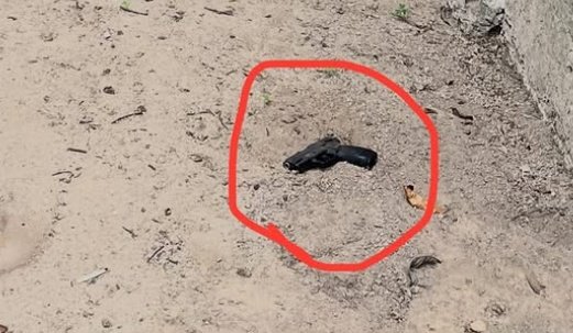 A pistola foi localizada no terreno de uma casa vizinha. O homem recebeu voz de prisão e foi conduzido à sede da DCCPAT para os procedimentos cabíveis.