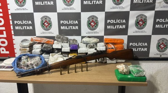 A arma foi abandonada junto com cerca de 30 quilos de drogas, entre maconha, skank, cocaína e crack. A PM reforçou as buscas no local mas não encontrou os acusados.