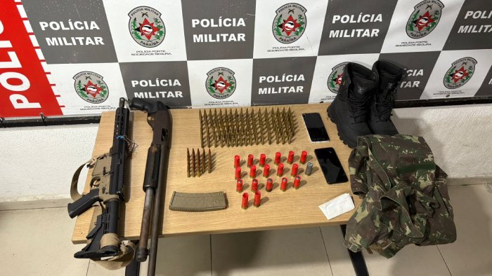 Durante a abordagem inicial, os policiais recolheram duas armas de fogo. Um terceiro homem conseguiu fugir, mas foi localizado pouco depois. Com ele, a PM encontrou um arsenal composto por um fuzil MK18, uma espingarda calibre 12, além de grande quantidade de munições, incluindo traçantes e projéteis de fuzil.