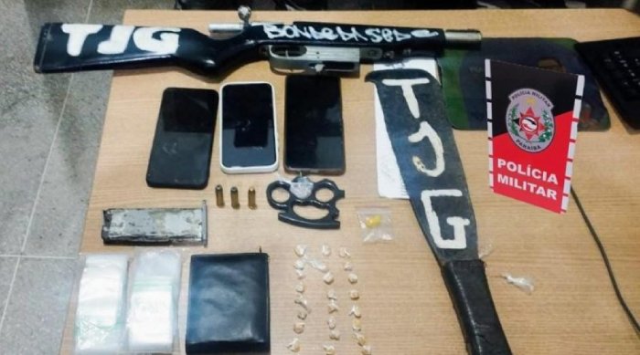 A apreensão foi realizada durante rondas, quando a viatura percebeu que suspeitos entraram rapidamente na sede ao notarem a presença da PM. Na revista, a arma foi localizada enrolada em um pano e os entorpecentes e outros materiais estavam escondidos em um fogão.