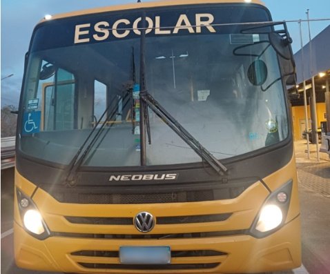 Durante atividades de fiscalização da Operação Mégalos, voltada ao controle de trânsito e transporte, a equipe do Grupo de Fiscalização de Trânsito e Transporte (GFT) abordou um veículo escolar pertencente ao Programa Caminho da Escola, modelo VW/NEOBUS 15.190 ESC.