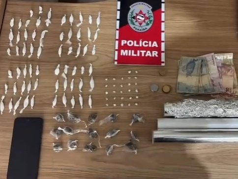 Na ação, foram apreendidos 63 papelotes de substância análoga à cocaína, 27 papelotes de crack, 15 papelotes de maconha, além de materiais utilizados para embalar drogas, um aparelho celular e R$ 78,40 em espécie.
