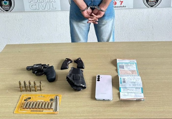 Após a identificação da autoria delitiva, a DCCPAT representou pela prisão preventiva do investigado, bem como pela expedição de mandado de busca e apreensão em sua residência. As ordens judiciais, deferidas pelo Juízo competente, foram cumpridas no bairro de Gramame, em João Pessoa, ocasião em que foi apreendido um revólver calibre .38, com numeração suprimida, além de 20 munições.