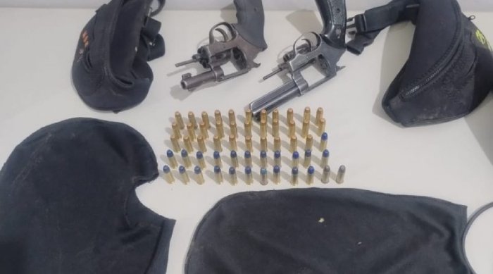 As equipes do 7º Batalhão encontraram a dupla atravessando a BR, fizeram a abordagem e deram voz de prisão. Além das armas, os acusados estavam com mais de 50 munições intactas (prontas para o uso).