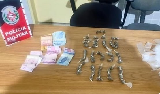 Ao se aproximar do local indicado, os policiais visualizaram um indivíduo com as características repassadas na denúncia, sendo realizada a abordagem. Durante a ação, foram apreendidos 63 invólucros de substância análoga à maconha, além de R$ 67,00 em dinheiro e um aparelho celular.
