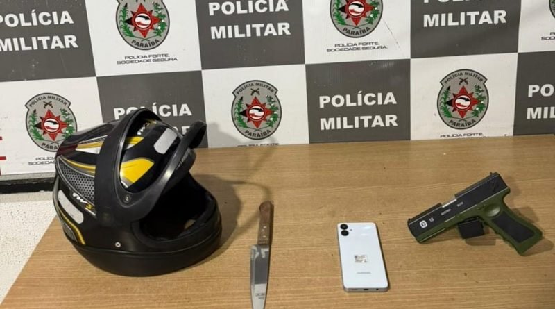 A Polícia Militar frustrou um casal que tentou roubar uma motocicleta, na noite desta sexta-feira (30) no Centro de João Pessoa. A dupla foi presa em flagrante, estava com um simulacro de arma de fogo, faca (foto acima), e um dos acusados já tinha um mandado de prisão em aberto.