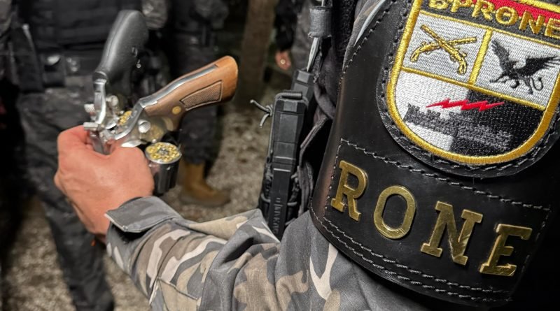De acordo com a PM, os acusados estavam em uma área de difícil acesso com dois revólveres, e foram flagrados durante reforço policial coordenado pelo próprio comandante-geral da PM, o coronel Sérgio Fonseca.
