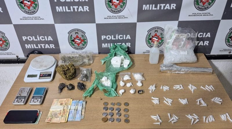 A Polícia Militar prendeu um suspeito de atuar no tráfico de drogas, na tarde desta quarta-feira (11), durante incursão realizada no bairro Alto do Céu, na zona norte de João Pessoa. O suspeito, que tem 25 anos, estava de posse de várias porções de cocaína e maconha, frasco de loló, balanças de precisão e materiais para armazenar entorpecentes.