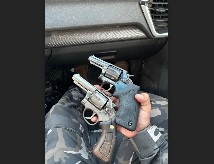 Ao passar pela casa do acusado, os policiais da Força Tática do 5º Batalhão perceberam quando o acusado tentou se desfazer das armas, ao perceber que a PM estava por perto. Ele abordado e preso em flagrante com os dois revólveres.