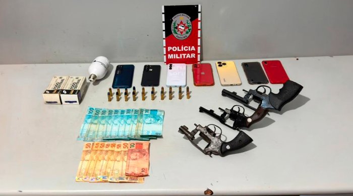 Diante da situação, foi realizado um cerco ao imóvel, resultando na abordagem de cinco homens e uma mulher. Durante as buscas, foram apreendidos três revólveres, sendo um de calibre .32 e dois calibres .38. Segundo os próprios suspeitos, o grupo estaria na localidade para atuar em disputas territoriais pelo tráfico de drogas na região.
