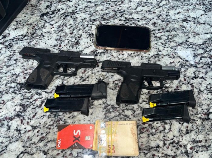 Cerca de 20 minutos após a ocorrência anterior, desta vez no município de Mamanguape, litoral norte paraibano, no km 31 da BR-101, uma equipe policial abordou um veículo Nivus de cor preta durante uma fiscalização de rotina. Ao realizarem a inspeção dos itens de segurança e elementos de identificação, os policiais localizaram, sob o banco do condutor, uma bolsa do tipo nécessaire contendo duas pistolas calibre 9mm e quatro carregadores. No console central, foram encontrados ainda R$ 3.000,00 em espécie e um cartão bancário de terceiros. Após consultas aos sistemas, constatou-se que uma das armas era fruto de furto na cidade de Serra do Mel/RN e a outra pertencia a um indivíduo falecido, vítima de execução também no estado do Rio Grande do Norte. O condutor, um homem de 26 anos, alegou desconhecer a procedência dos objetos e informou que apenas transportava o veículo de Mossoró/RN para João Pessoa/PB, a pedido de uma conhecida. Diante dos fatos, o envolvido foi detido em flagrante e poderá responder pelos crimes de porte ilegal de arma de fogo de uso restrito e receptação, sendo encaminhado, juntamente com o material apreendido, à Delegacia de Polícia Civil de Mamanguape para as providências legais cabíveis.