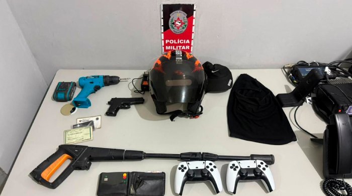 O segundo indivíduo foi alcançado e abordado no local. Com ele, os policiais encontraram diversos materiais relacionados à prática criminosa, entre eles: um simulacro de pistola, uma balaclava, dinheiro e equipamentos eletrônicos.