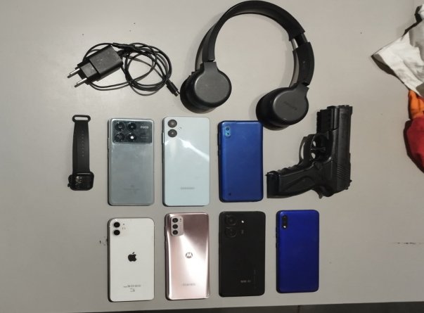 Com o grupo foram recuperados vários aparelhos celulares e um simulacro de pistola foi apreendido.