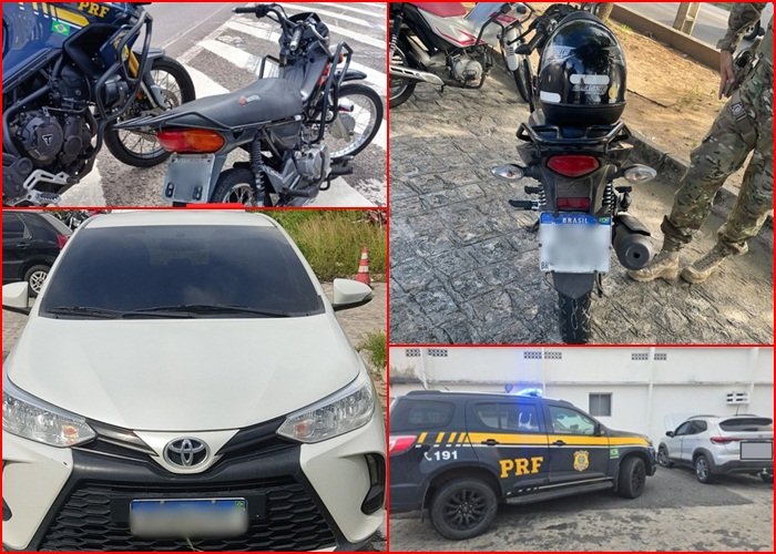 Também em João Pessoa, desta vez no km 23 da BR-230, às 13h35, equipe da PRF recuperou um veículo com registro de roubo e deteve o seu condutor. A ação teve início após a equipe visualizar um Toyota/Yaris de cor branca realizando uma frenagem brusca que quase causou um sinistro de trânsito (acidente), além de possuir películas escuras que impediam a visibilidade interna. Ao abordar o automóvel, os agentes constataram que o motorista, um homem de 23 anos, não possuía CNH. Durante inspeção técnica detalhada, foram identificadas adulterações nos elementos identificadores, confirmando tratar-se de um veículo roubado em março de 2026 na capital paraibana que circulava com placas clonadas. Diante do flagrante, o homem recebeu voz de prisão pelos crimes de receptação e adulteração de sinal identificador, sendo encaminhado à Central de Polícia Civil do município para a adoção das providências legais, enquanto o carro foi apreendido para posterior devolução ao proprietário.