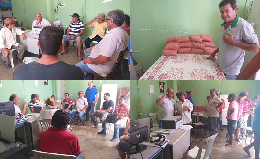 Nesta sexta-feira (07), o Prefeito Claudio Antônio, juntamente com o Secretário de Agricultura, Geraldo Rabello realizando reunião com os Agricultores, e distribuíram sementes de Capim, e Sorgo Boliviano.