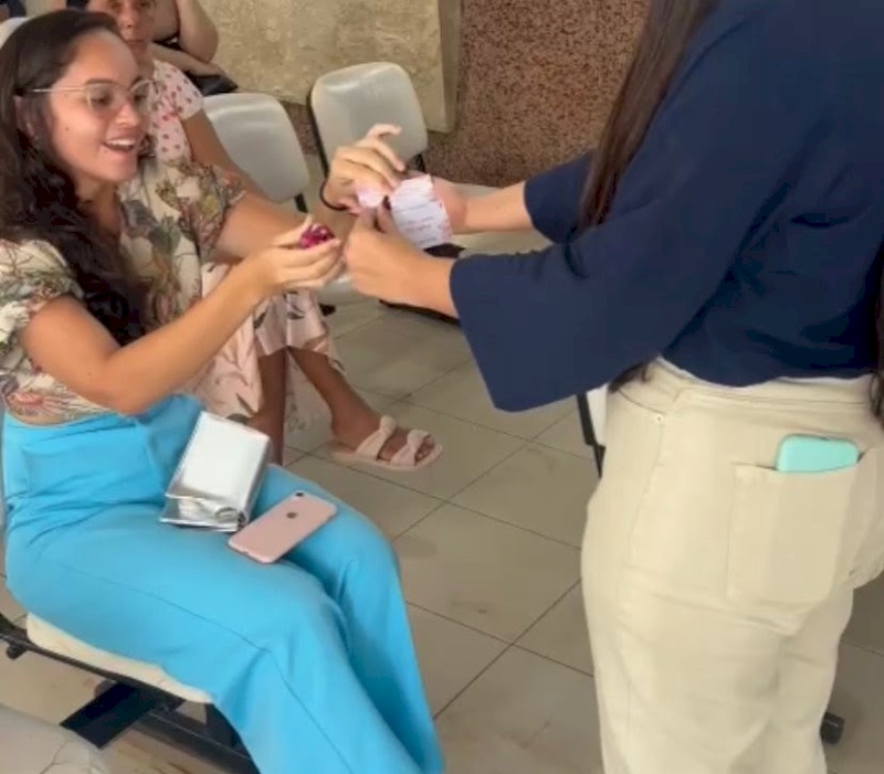 Enquanto aguardavam na recepção o atendimento no ambulatório médico, as pacientes também foram homenageadas e receberam chocolate e mensagens. No mesmo momento, uma equipe percorria as enfermarias distribuindo com as pacientes mensagens alusivas à data e chocolates.