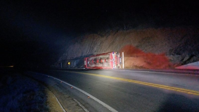 Com o tombamento, parte da carga vazou, gerando risco de incêndio e contaminação da pista. O Corpo de Bombeiros foi acionado para conter o vazamento, enquanto a Polícia Rodoviária Federal (PRF) permanece no local realizando a sinalização e monitorando o tráfego.
