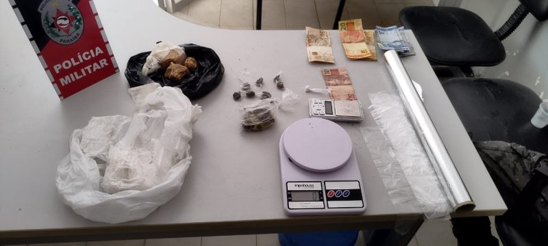 Diante do flagrante e das informações sobre a residência ser utilizada para o tráfico, a equipe realizou uma verificação no interior do imóvel. Em cima de uma mesa, dentro de uma sacola preta, foram localizados mais entorpecentes e materiais utilizados para embalagem.