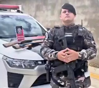 A ação ocorreu após denúncias anônimas de disparos de arma de fogo na localidade. No endereço indicado, o suspeito negou os disparos, mas confirmou a posse das armas, realizando a entrega voluntária do material à guarnição, sem necessidade de ingresso no imóvel.