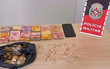 Na a ação, foram apreendidas 76 pedras de substância análoga a crack, R$ 1.230,00 em cédulas, R$ 108,00 em moedas e um celular.