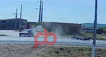 Uma câmera de monitoramento flagrou o exato momento em que um veículo de passeio, ao tentar realizar uma conversão à esquerda para entrar na comunidade, foi atingido na traseira por um motociclista que seguia no sentido Sousa–Cajazeiras.