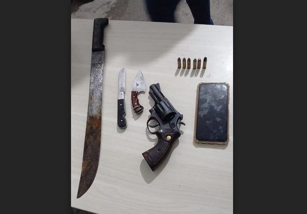 Com o homem, foram encontrados dois punhais na cintura. Após busca no interior do veículo, estacionado próximo ao local, os policiais localizaram um revólver calibre .38, marca Taurus, com seis munições intactas, além de um facão.