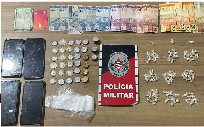 Durante a busca detalhada no perímetro, as equipes localizaram 92 porções de substância semelhante a crack, além de R$ 204,50 em espécie e quatro aparelhos celulares.