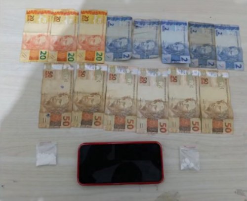 Além do entorpecente, também foram apreendidos um aparelho celular e a quantia de R$ 370,00 em dinheiro. O veículo utilizado pelo suspeito também foi apresentado à autoridade policial.