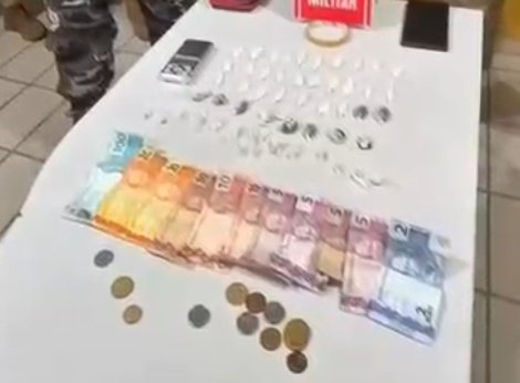Diante das informações, os policiais localizaram outro suspeito, com quem foram encontradas mais porções de entorpecentes e dinheiro. Em diligências na residência, foram apreendidos mais entorpecentes, uma balança de precisão e quantia em espécie.