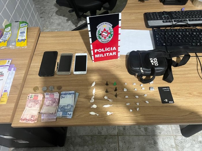 Os indivíduos — um homem identificado pelas iniciais L.D.L.D.N. e um adolescente de 17 anos — foram interceptados quando tentavam entrar em uma residência já conhecida pela polícia por funcionar como ponto de tráfico. Com eles, os policiais encontraram três celulares, porções de cocaína, maconha e crack, além de R$ 155 em dinheiro.