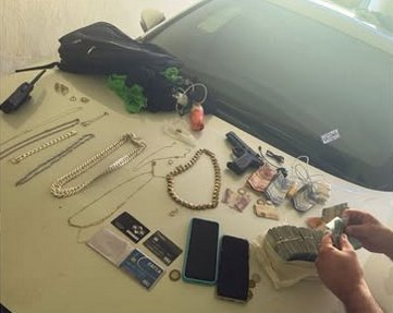 Durante a abordagem, os policiais constataram que o indivíduo possuía mandado de prisão em aberto, além de encontrar em sua posse uma grande quantia em dinheiro e diversas joias.