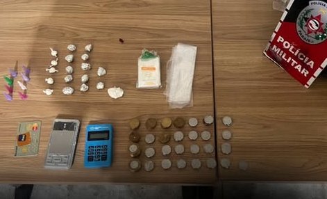 No imóvel, a PM localizou ainda uma balança de precisão, uma máquina de cartão, embalagens plásticas, pinos vazios e uma quantia em dinheiro trocado, reforçando a tese de tráfico no local.