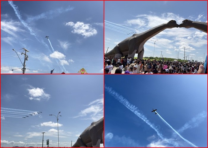 Na oportunidade, a Avenida João Bosco Marques de Souza, na região do Portal dos Dinossauros, na entrada de Sousa, ficou completamente lotada para acompanhar a apresentação da Esquadrilha da Fumaça.